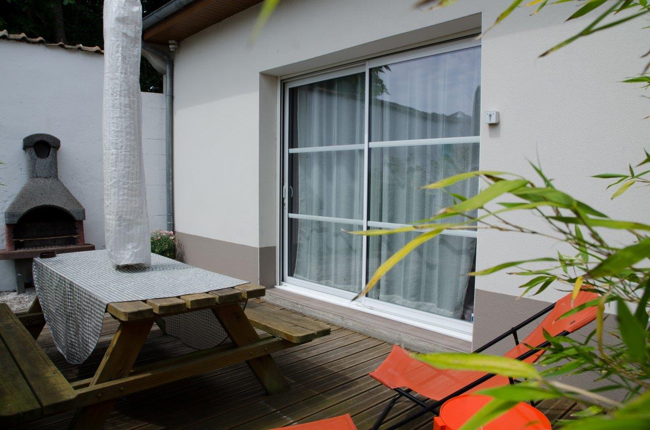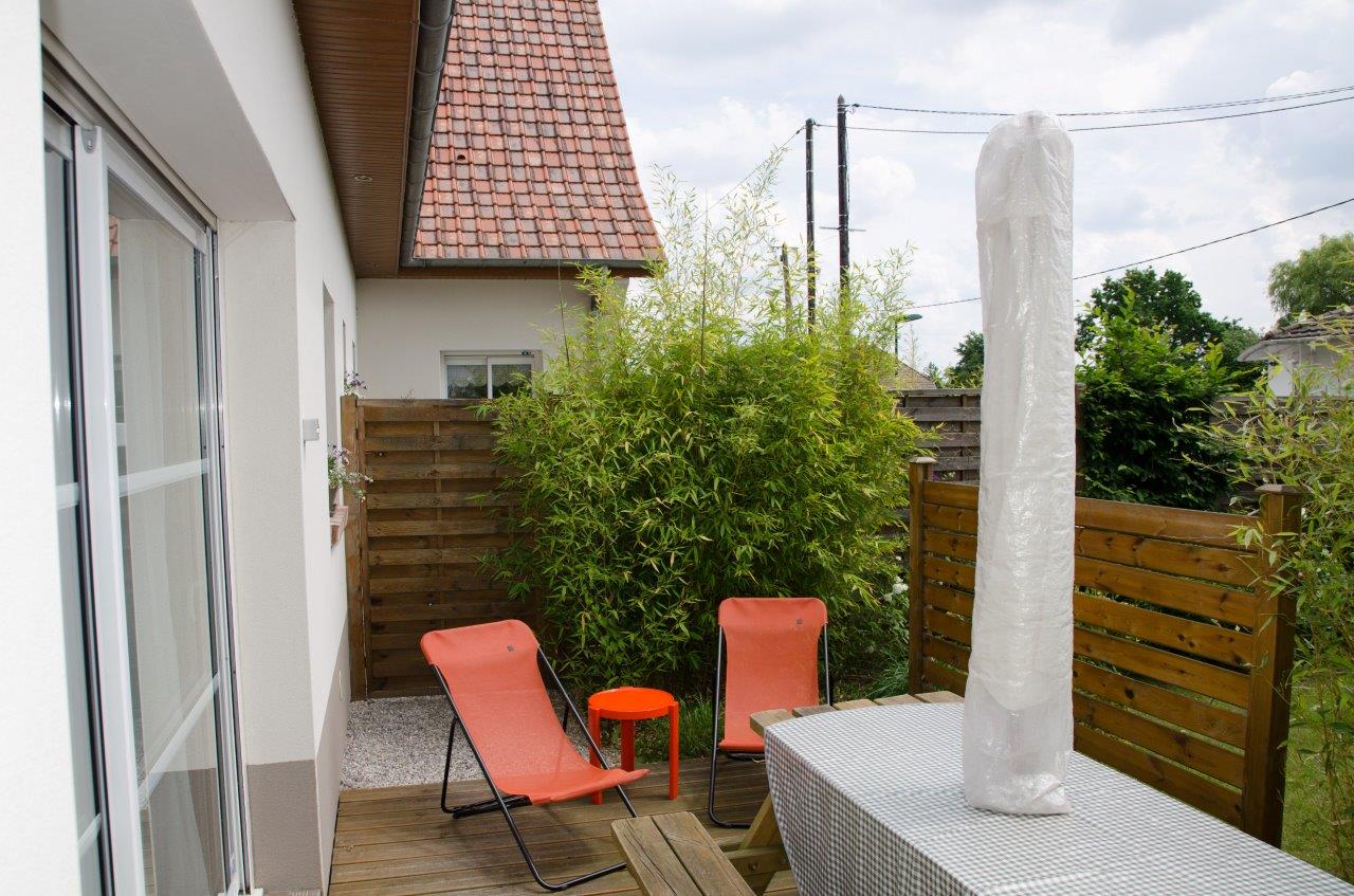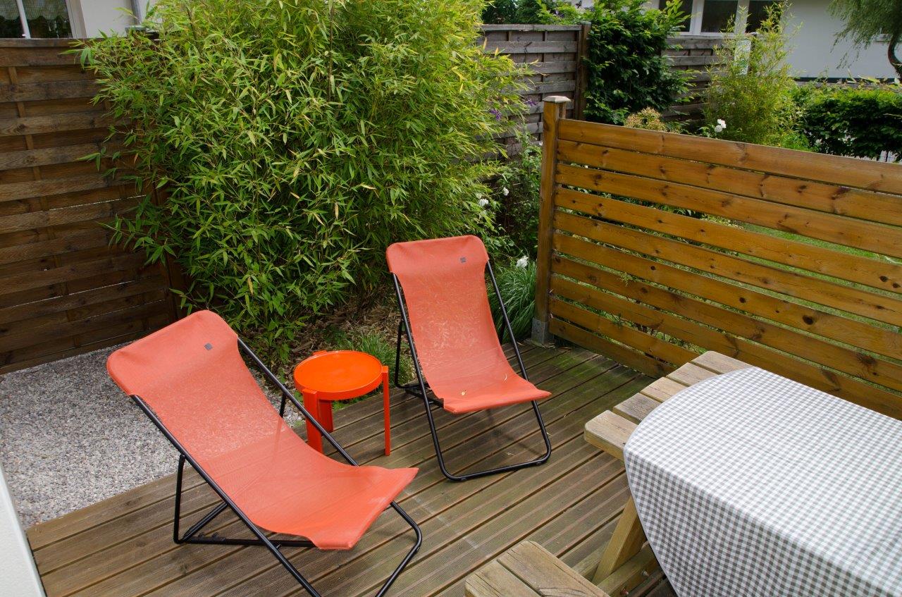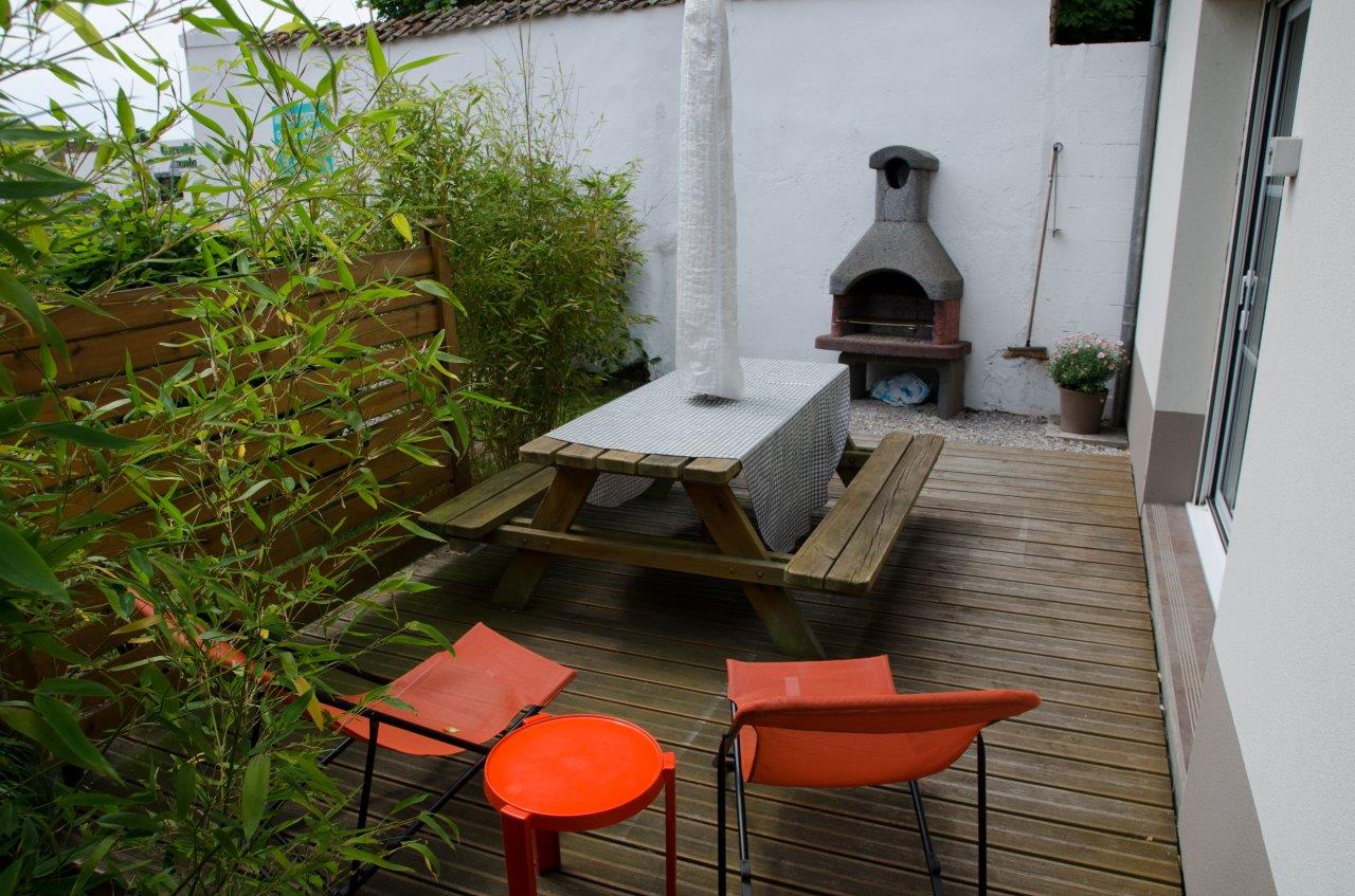 equipée de transats , parasol , barbecue ...